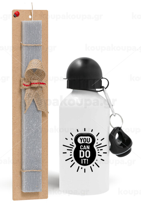 You can do it, Easter Set, metallic aluminum water bottle (500ml) & aromatic flat Easter candle (30cm) (GRAY)