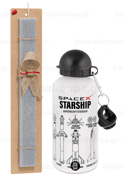 Space X, Easter Set, metallic aluminum water bottle (500ml) & aromatic flat Easter candle (30cm) (GRAY)