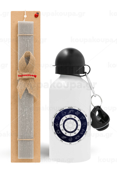 Ζωδιακός κύκλος, Easter Set, metallic aluminum water bottle (500ml) & aromatic flat Easter candle (30cm) (GRAY)