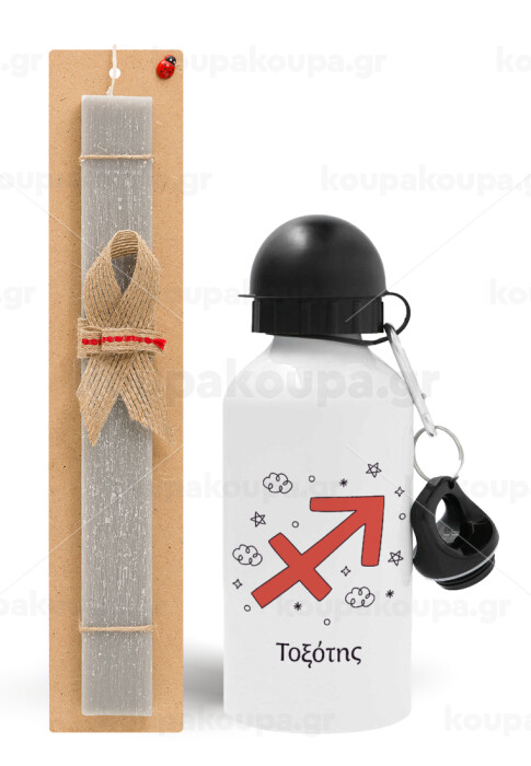 Ζώδια Τοξότης, Easter Set, metallic aluminum water bottle (500ml) & aromatic flat Easter candle (30cm) (GRAY)