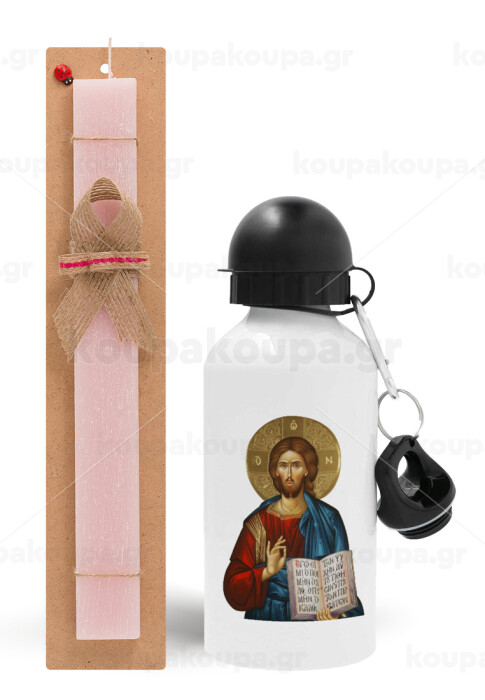 Jesus, Easter Set, metallic aluminum bottle (500ml) & aromatic flat Easter candle (30cm) (PINK)