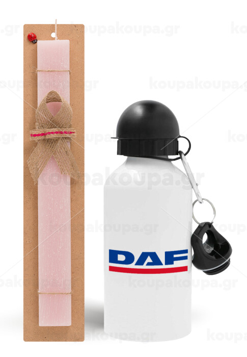 DAF, Easter Set, metallic aluminum bottle (500ml) & aromatic flat Easter candle (30cm) (PINK)