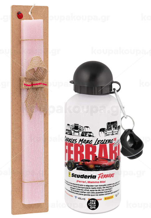 F1 Ferrari, Easter Set, metallic aluminum bottle (500ml) & aromatic flat Easter candle (30cm) (PINK)
