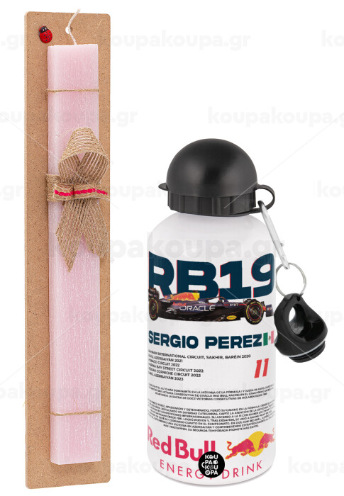 Redbull Sergio Perezi, Easter Set, metallic aluminum bottle (500ml) & aromatic flat Easter candle (30cm) (PINK)