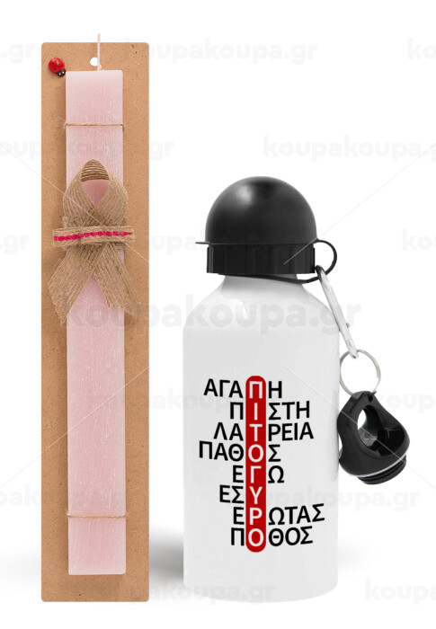 Πιτόγυρο πόθος, Easter Set, metallic aluminum bottle (500ml) & aromatic flat Easter candle (30cm) (PINK)