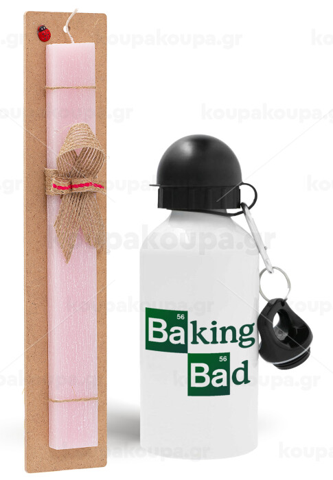 Baking Bad, Easter Set, metallic aluminum bottle (500ml) & aromatic flat Easter candle (30cm) (PINK)