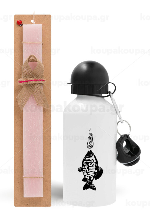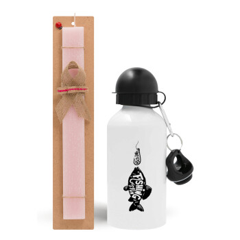 Fishing is fun, Easter Set, metallic aluminum bottle (500ml) & aromatic flat Easter candle (30cm) (PINK)
