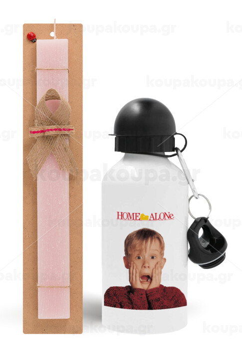 Μόνος στο σπίτι Kevin McCallister Shocked, Easter Set, metallic aluminum bottle (500ml) & aromatic flat Easter candle (30cm) (PINK)