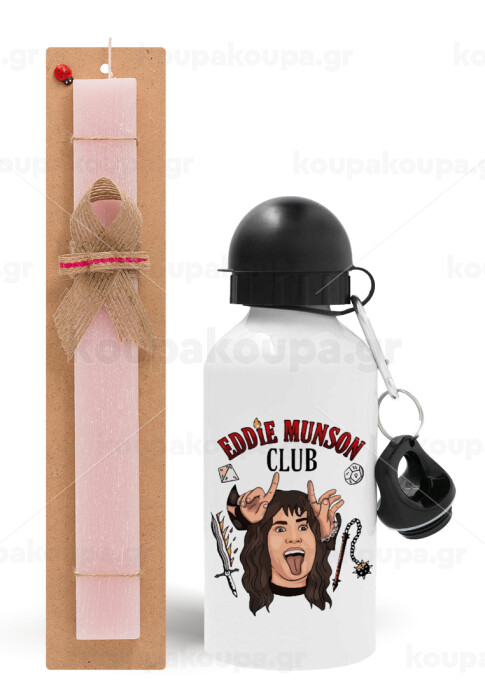 Eddie Munson, Hellfire CLub, Stranger Things, Easter Set, metallic aluminum bottle (500ml) & aromatic flat Easter candle (30cm) (PINK)