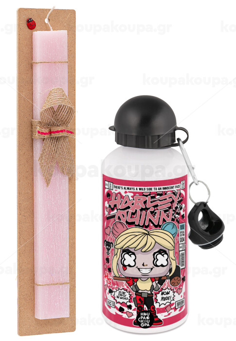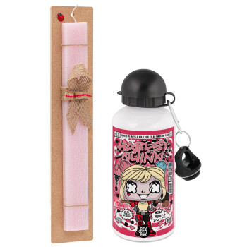 Harley Quinn (Χάρλεϊ Κουίν), Easter Set, metallic aluminum bottle (500ml) & aromatic flat Easter candle (30cm) (PINK)