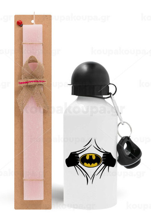 Hero batman, Easter Set, metallic aluminum bottle (500ml) & aromatic flat Easter candle (30cm) (PINK)