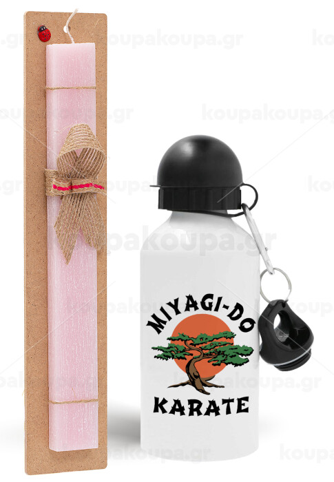 Miyagi-do karate, Easter Set, metallic aluminum bottle (500ml) & aromatic flat Easter candle (30cm) (PINK)