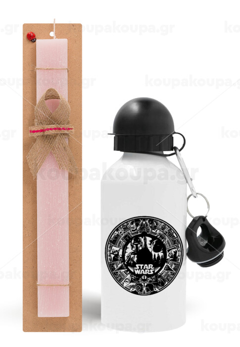Star Wars Disk, Easter Set, metallic aluminum bottle (500ml) & aromatic flat Easter candle (30cm) (PINK)