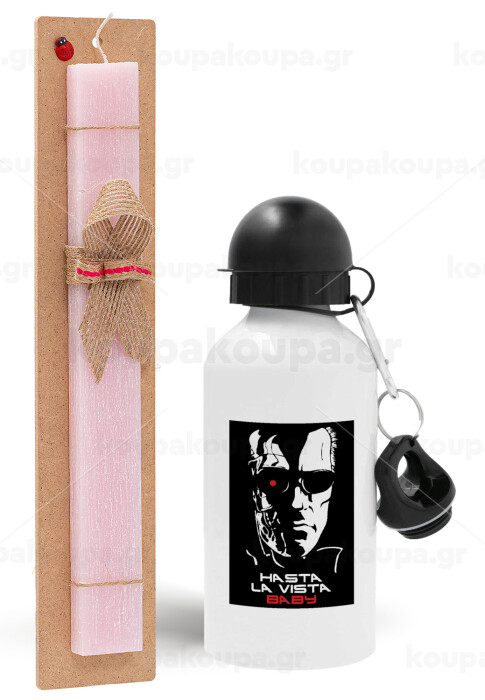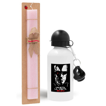 Terminator Hasta La Vista, Easter Set, metallic aluminum bottle (500ml) & aromatic flat Easter candle (30cm) (PINK)