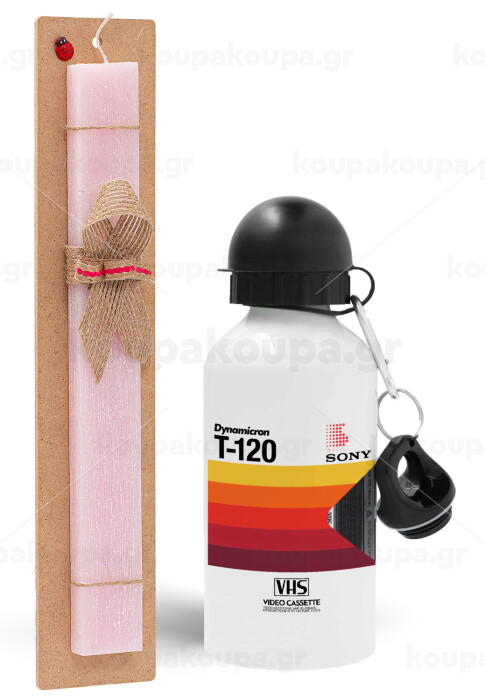 VHS sony dynamicron T-120, Easter Set, metallic aluminum bottle (500ml) & aromatic flat Easter candle (30cm) (PINK)