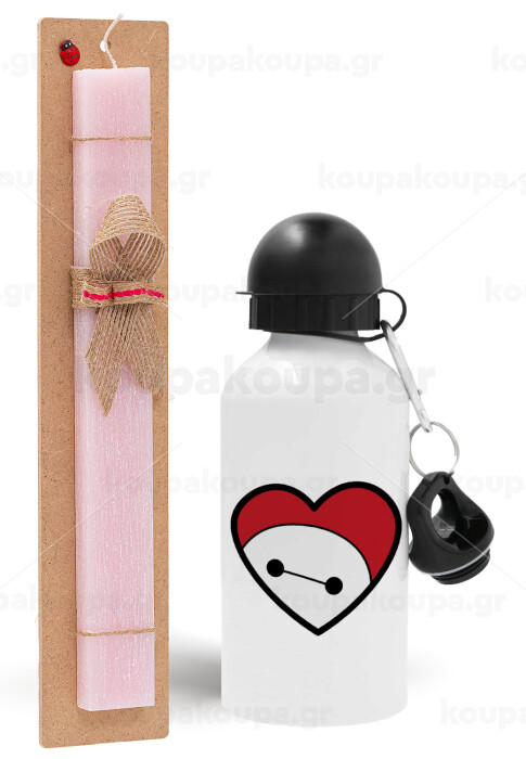 Baymax heart, Easter Set, metallic aluminum bottle (500ml) & aromatic flat Easter candle (30cm) (PINK)