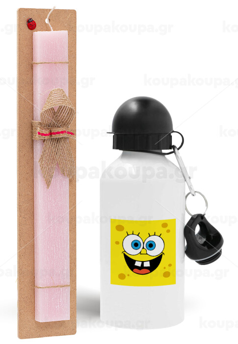 BOB, Easter Set, metallic aluminum bottle (500ml) & aromatic flat Easter candle (30cm) (PINK)