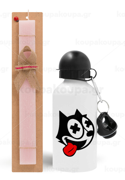 helix the cat, Easter Set, metallic aluminum bottle (500ml) & aromatic flat Easter candle (30cm) (PINK)