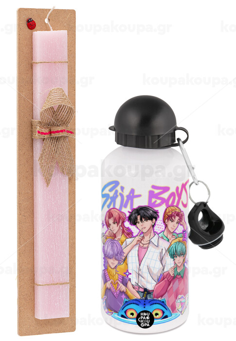 Huntrix Saja Boys, Easter Set, metallic aluminum bottle (500ml) & aromatic flat Easter candle (30cm) (PINK)