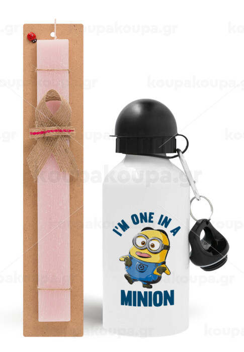 I'm one in a minion, Easter Set, metallic aluminum bottle (500ml) & aromatic flat Easter candle (30cm) (PINK)
