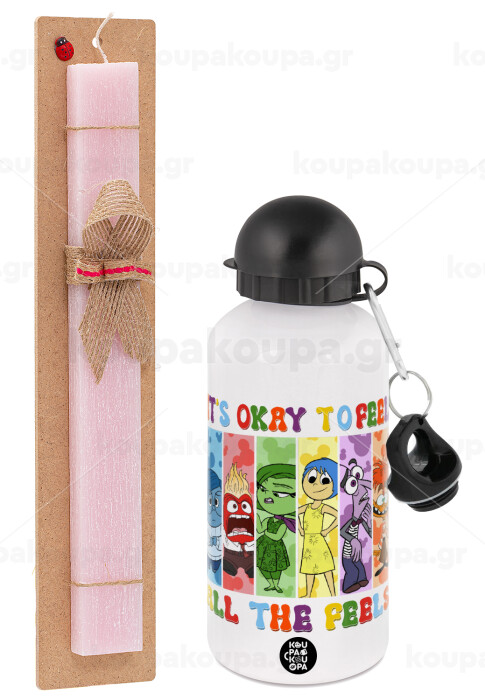 Inside Out It's Okay To Feel All The Feels , Easter Set, metallic aluminum bottle (500ml) & aromatic flat Easter candle (30cm) (PINK)