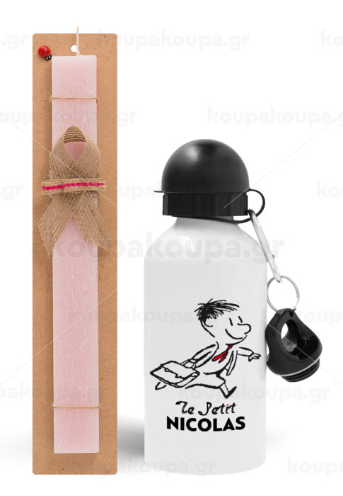 Le Petit Nicolas, Easter Set, metallic aluminum bottle (500ml) & aromatic flat Easter candle (30cm) (PINK)