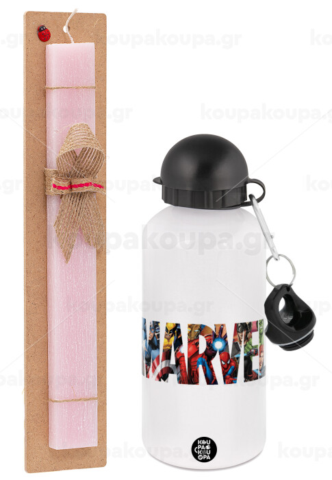 MARVEL characters, Easter Set, metallic aluminum bottle (500ml) & aromatic flat Easter candle (30cm) (PINK)