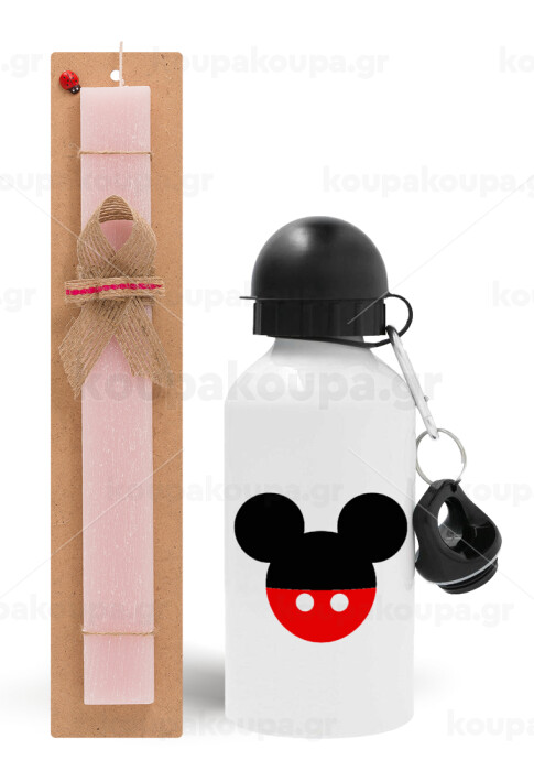 Mickey head, Easter Set, metallic aluminum bottle (500ml) & aromatic flat Easter candle (30cm) (PINK)