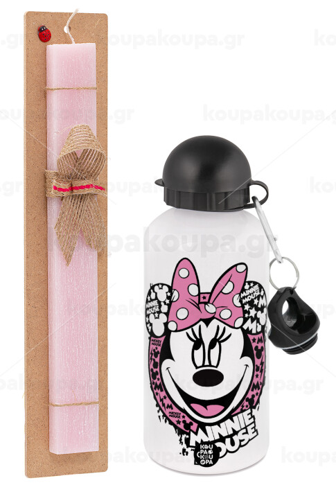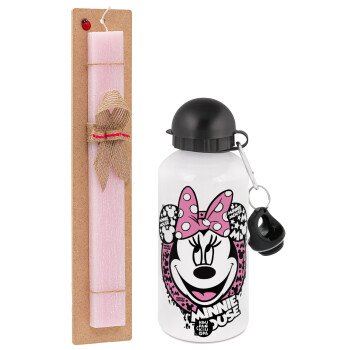 Minnie mouse, Easter Set, metallic aluminum bottle (500ml) & aromatic flat Easter candle (30cm) (PINK)