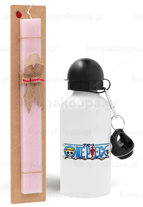 Onepiece logo, Easter Set, metallic aluminum bottle (500ml) & aromatic flat Easter candle (30cm) (PINK)