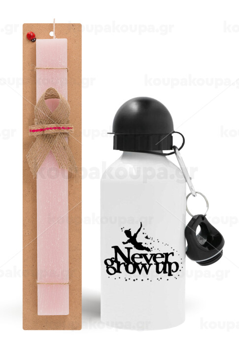 Peter pan, Never Grow UP, Easter Set, metallic aluminum bottle (500ml) & aromatic flat Easter candle (30cm) (PINK)