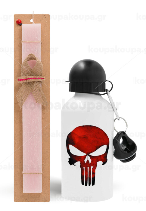 Red skull, Easter Set, metallic aluminum bottle (500ml) & aromatic flat Easter candle (30cm) (PINK)