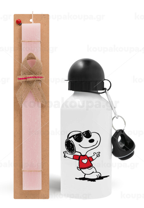 Snoopy καρδούλα, Easter Set, metallic aluminum bottle (500ml) & aromatic flat Easter candle (30cm) (PINK)