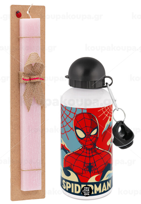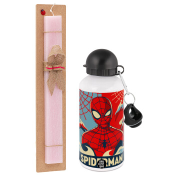Spiderman kid, Easter Set, metallic aluminum bottle (500ml) & aromatic flat Easter candle (30cm) (PINK)