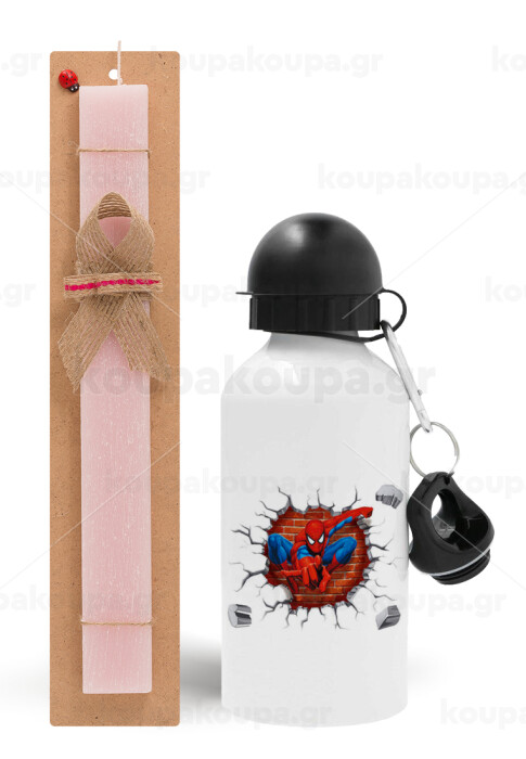 Spiderman wall, Easter Set, metallic aluminum bottle (500ml) & aromatic flat Easter candle (30cm) (PINK)