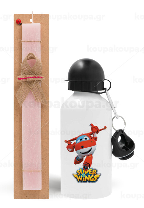 Super Wings, Easter Set, metallic aluminum bottle (500ml) & aromatic flat Easter candle (30cm) (PINK)