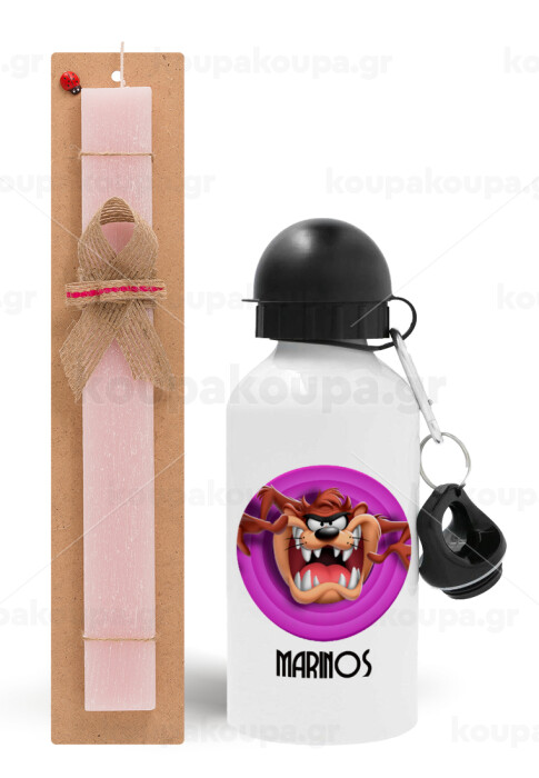 Taz, Easter Set, metallic aluminum bottle (500ml) & aromatic flat Easter candle (30cm) (PINK)