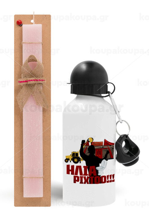 Ηλία ρίχτο!, Easter Set, metallic aluminum bottle (500ml) & aromatic flat Easter candle (30cm) (PINK)