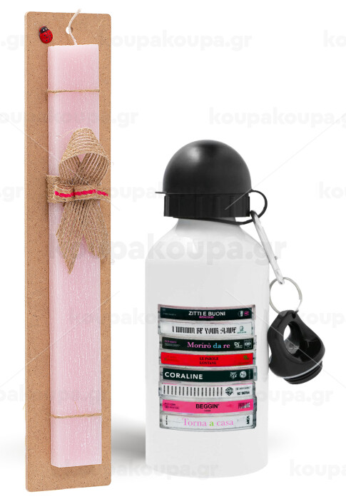 Maneskin Cassette, Easter Set, metallic aluminum bottle (500ml) & aromatic flat Easter candle (30cm) (PINK)