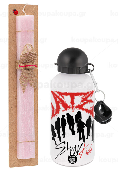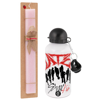 Stray Kids Boy band, Easter Set, metallic aluminum bottle (500ml) & aromatic flat Easter candle (30cm) (PINK)