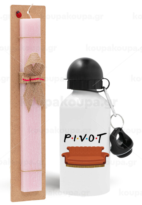 Friends Pivot, Easter Set, metallic aluminum bottle (500ml) & aromatic flat Easter candle (30cm) (PINK)