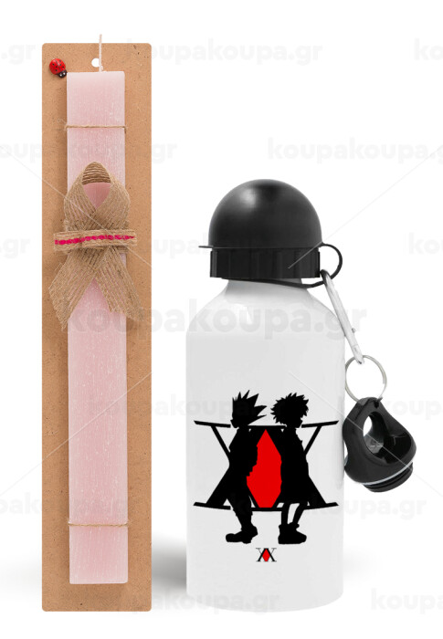 hunter x hunter, Easter Set, metallic aluminum bottle (500ml) & aromatic flat Easter candle (30cm) (PINK)