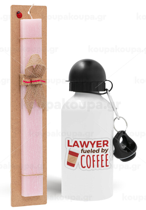 Lawyer fueled by coffee, Easter Set, metallic aluminum bottle (500ml) & aromatic flat Easter candle (30cm) (PINK)