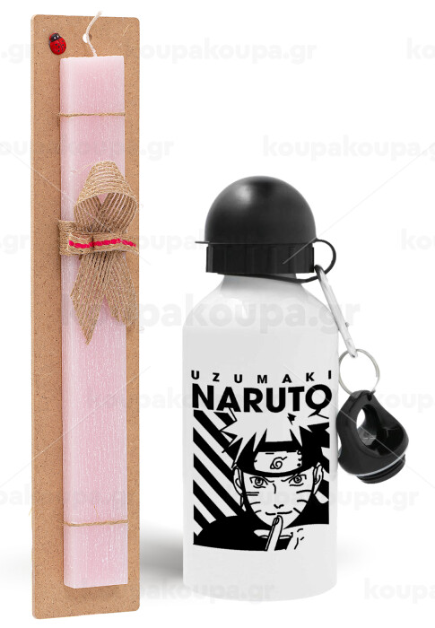 Naruto uzumaki, Easter Set, metallic aluminum bottle (500ml) & aromatic flat Easter candle (30cm) (PINK)