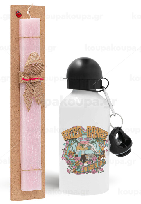 Outerbanks paradise on earth, Easter Set, metallic aluminum bottle (500ml) & aromatic flat Easter candle (30cm) (PINK)