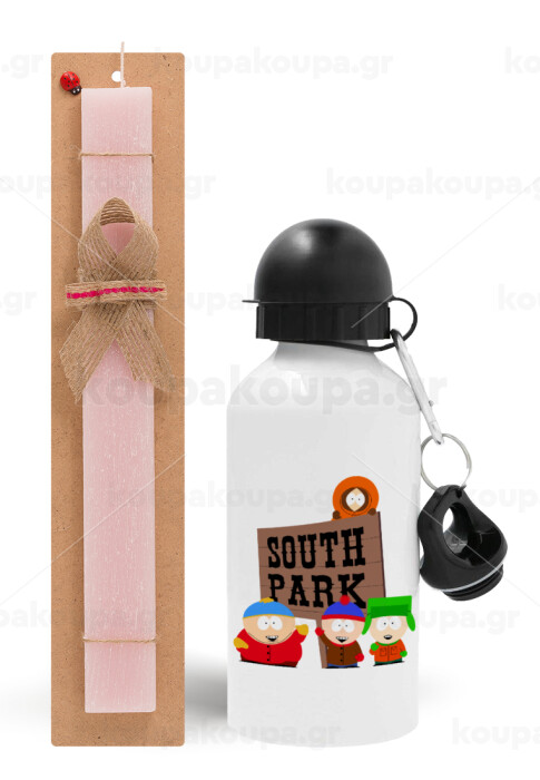 South Park, Easter Set, metallic aluminum bottle (500ml) & aromatic flat Easter candle (30cm) (PINK)