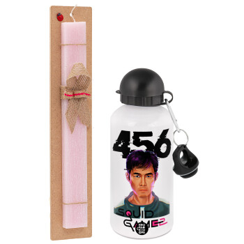 Squid game 456 Gi-Hun, Easter Set, metallic aluminum bottle (500ml) & aromatic flat Easter candle (30cm) (PINK)
