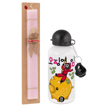 Squid game money pig, Easter Set, metallic aluminum bottle (500ml) & aromatic flat Easter candle (30cm) (PINK)