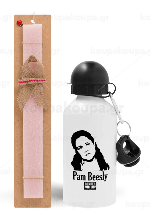 The office Pam Beesly, Easter Set, metallic aluminum bottle (500ml) & aromatic flat Easter candle (30cm) (PINK)