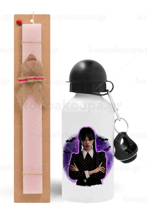 Wednesday moonlight, Easter Set, metallic aluminum bottle (500ml) & aromatic flat Easter candle (30cm) (PINK)
